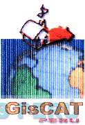 El logotipo conformado por las denominaciones GISCAT escrita en letras características y PERÚ (ésta sin reivindicar) escrita en letras características, sobre ellas se aprecian las figuras estilizadas de una casa, una figura irregular y un globo terráqueo; todo en los colores anaranjado, azul, celeste, amarillo, verde y rojo; conforme al modelo adjunto