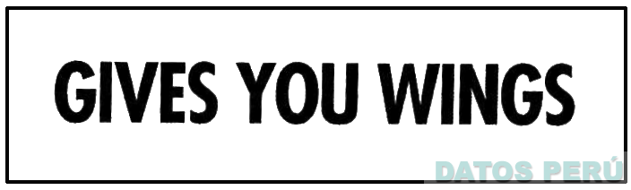 La denominación GIVES YOU WINGS escrita en letras características dentro de un rectángulo; conforme al modelo adjunto