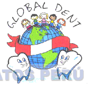El logotipo conformado por la denominación GLOBAL DENT escrita en letras características, ubicadas en forma semicircular, en la parte inferior la representación de un globo terráqueo, con la figura estilizada de cinco niños agarrados de la mano y en centro un cinto, todo sostenido por la figura humanizada de dos piezas dentales; todo en la combinación de colores negro, marrón, beige, amarillo, anaranjado, rosado, blanco, rojo, morado, fucsia, celeste, azul, verde claro, verde oscuro, lila, plomo y marrón oscuro, conforme al modelo adjunto