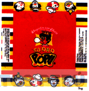 LA ETIQUETA DE FORMA CUADRADA CON BORDES EN COLOR AMARILLO, EN LOS QUE SE SOBREPONEN CUATRO ROSTROS DE PAYASOS PEQUEÑOS TRAZADOS EN COLOR AZUL, ROJO Y BLANCO. EN EL CENTRO SE SOBREPONEN, SOBRE FONDO ROJO, LA FIGURA CARACTERISTICA DE UN NIÑO CON CORONA Y LA DENOMINACION GLOBO POP EN LETRAS CARACTERISTICAS, SEGUN MODELO ADJUNTO,