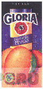 El logotipo conformado por la denominación GLORIA NECTAR DE MANGO escrita en letras características, se aprecia la figura de una cinta ondulante, las figuras estilizadas de mangos, y la figura irregular conteniendo un clavel y la cabeza de una vaca, en la combinación de colores morado, negro, blanco, azul, rojo, anaranjado y verde; conforme al modelo adjunto