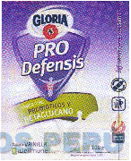 La denominación GLORIA PRODEFENSIS ÚNICO CON PROBIÓTICOS Y BETAGLUCANO SABOR A VAINILLA y logotipo (se reivindica colores), conforme al modelo