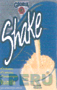La etiqueta rectangular conformada por la denominación SHAKE escrita en letras características de color blanco con borde azul, en cuya parte superior se observa la denominación GLORIA escrita en letras características de color azul y debajo la figura de un clavel de color rojo en cuyo interior se aprecia la figura de la cabeza de una vaca en los colores blanco y negro; asimismo, en la parte inferior se aprecia la figura estilizada de un vaso que contiene una bebida de color anaranjado y demás frases alusivas al producto en colores amarillo y blanco; todo sobre un fondo de color azul y plomo; conforme al modelo adjunto