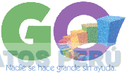El logotipo conformado por la palabra GO y la denominación NADIE SE HACE GRANDE SIN AYUDA escrita en letras características, dentro de la letra O hay una escalera ascendente, todo en los colores celeste, morado, rojo, anaranjado, amarillo, verde y azul; conforme al modelo adjunto