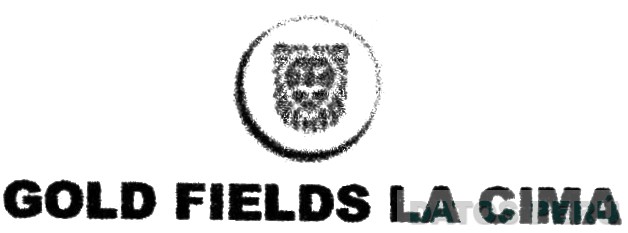 El logotipo conformado por la denominación GOLD FIELDS LA CIMA escrita en letras características, y la figura estilizada de la cabeza de un león dentro de un círculo; sin reivindicar colores; conforme al modelo adjunto