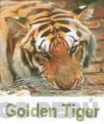 El logotipo conformado por la denominación GOLDEN TIGER escrita en letras características, acompañada por la figura de un tigre, todo sobre un fondo de una pared de ladrillos y una franja en la parte inferior y en la combinación de colores verde, negro, beige, anaranjado, marrón y blanco; conforme al modelo adjunto