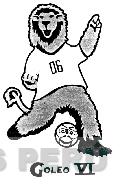 El logotipo conformado por la denominación GOLEO escrita en letras características y la cifra romana VI, con la representación humanizada de un león que lleva sobre su camiseta la cifra arábica 06 y que tiene la actitud de prepararse para patear una pelota con figura caricaturizada de un rostro; conforme al modelo adjunto