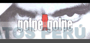 El logotipo conformado por la denominación GOLPE A GOLPE escrita en letras características sobre una figura rectangular donde se aprecian los ojos de una persona entre dos líneas paralelas, en los colores negro, rojo, blanco y gris; conforme al modelo adjunto