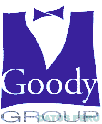 El logotipo conformado por la denominación GOODY GROUP escrita en letras características y la representación de un cuello de camisa con corbata michi, todo en los colores azul, blanco y gris; conforme al modelo adjunto