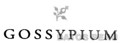 La denominación GOSSYPIUM escrita en letras características, acompañada de una flor estilizada, todo en color gris en dos tonalidades; conforme al modelo adjunto