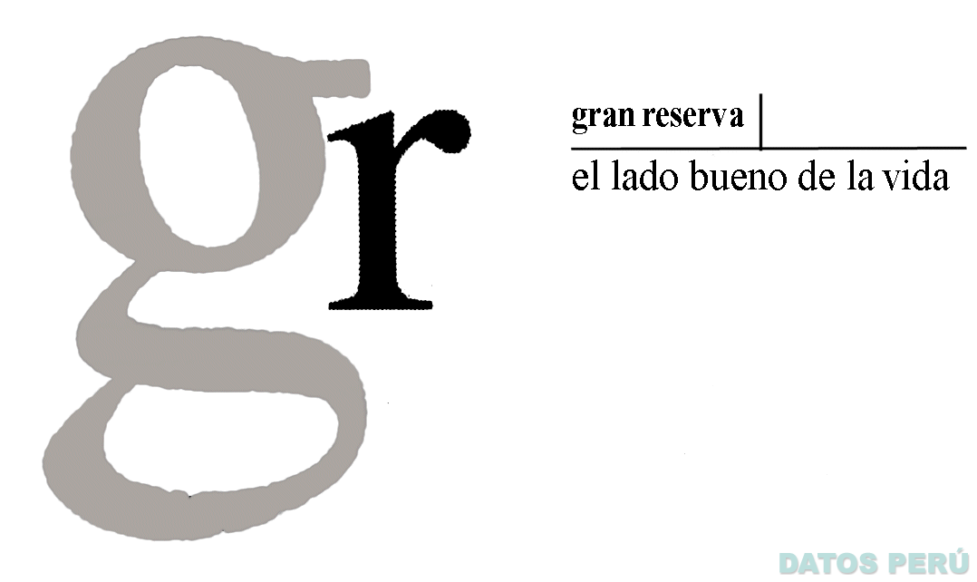 El logotipo conformado por la denominación GRAN RESERVA, EL LADO BUENO DE LA VIDA escrita en letras características, acompañada en la parte izquierda de las letras GR escritas en forma característica y dos líneas que se intersecan; conforme al modelo adjunto