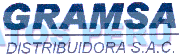 El logotipo conformado por la denominación GRAMSA escrita en letras características, subrayada por una línea horizontal, debajo la denominación DISTRIBUIDORA S.A.C. escrita en letras características, en los colores azul y blanco; conforme al modelo adjunto