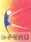 El logotipo conformado por la figura estilizada de una silueta humana con brazos y piernas extendidas, debajo de la cual aparece la denominación GRAN VIA-50 escrita en letras características, todo en los colores rojo, amarillo, anaranjado, azul, blanco y negro; conforme al modelo adjunto