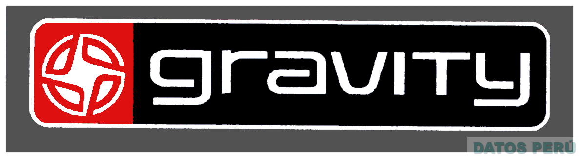 El logotipo conformado por la denominación GRAVITY escrita en letras características, al lado derecho una estrella de cuatro puntas dentro de un círculo ambos rodeados por una línea rectangular, todo dentro de un rectángulo, en los colores rojo, negro, blanco y plomo; conforme al modelo adjunto