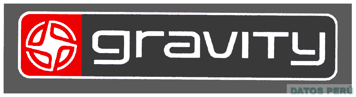El logotipo conformado por la denominación GRAVITY escrita en letras características, al lado derecho una estrella de cuatro puntas dentro de un círculo ambos rodeados por una línea rectangular, todo dentro de un rectángulo, en los colores rojo, negro, blanco y plomo; conforme al modelo adjunto