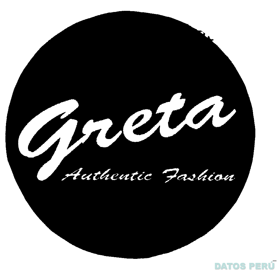 El logotipo circular que contiene la denominación GRETA AUTHENTIC FASHION escrita en letras características, en los colores blanco y negro; conforme al modelo adjunto.