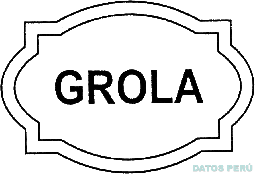 La denominación GROLA escrita en letras características dentro de una figura ovalada irregular con dos bordes; conforme al modelo adjunto