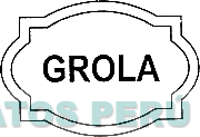 La denominación GROLA escrita en letras características dentro de una figura ovalada irregular con dos bordes; conforme al modelo adjunto