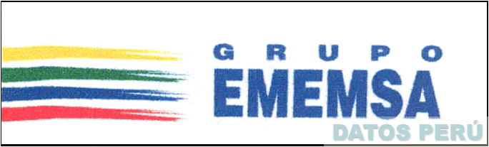 El logotipo conformado por la denominación GRUPO EMEMSA escrita en letras características de color azul, antecedida por cuatro franjas de color amarillo, verde, azul y rojo, respectivamente, cada una; conforme al modelo adjunto