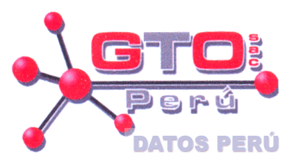 El logotipo conformado por la denominación GTO PERÚ S.A.C. escrita en letras características, con la representación de un electrón en expansión, compuesto por las figuras de cinco esferas unidas por líneas concéntricas y una línea horizontal con una sexta esfera hacia la derecha, todo con la proyección de una sombra; en la combinación de colores rojo y gris; conforme al modelo adjunto