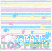 El logotipo conformado por la denominación GÚ-BB escrita en letras características, al lado izquierdo se aprecia la figura de un osito, en el fondo se aprecian líneas horizontales y huellitas de animales, todo en los colores amarillo, verde, celeste, lila, rosado, blanco y turquesa; conforme al modelo adjunto
