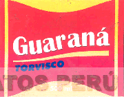 El logotipo conformado por una figura rectangular en cuya parte central se halla una franja roja irregular sobre ella la denominación GUARANÁ escrita en letras características, y sub-rayada por una línea irregular, bajo la cual se aprecia la denominación TORVISCO escrita en letras características en colores blanco, amarillo y azul, respectivamente; en los extremos laterales se ubican líneas verticales de color amarillo; y en la parte superior e inferior se aprecian figuras cóncavas en colores amarillo y crema, respectivamente; conforme al modelo adjunto