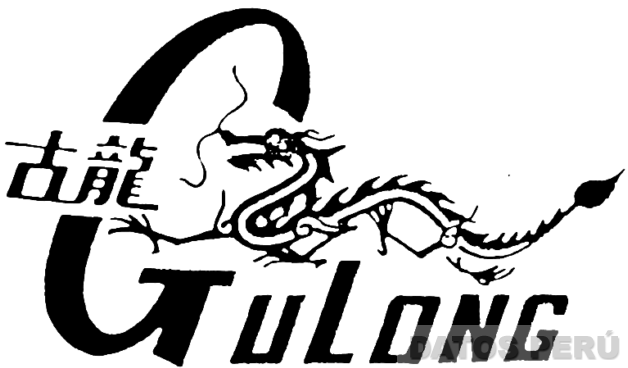 LA ETIQUETA CONTENIENDO LA DENOMINACION GULONG ESCRITA EN LETRAS CARACTERISTICAS Y EN MEDIO DE ELLA CARACTERES CHINOS Y LA FIGURA ESTILIZADA DE UN DRAGON ANTIGUO; CONFORME AL MODELO ADJUNTO