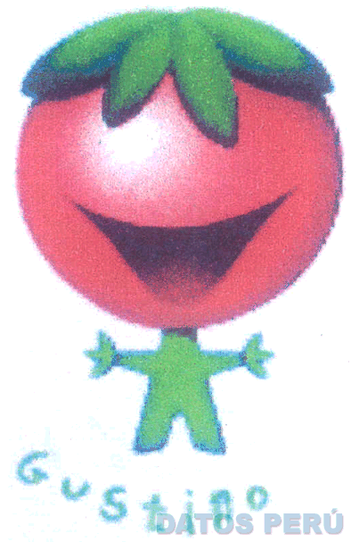 La denominación GUSTINO escrita en letras características y la representación caricaturizada de un muñeco en forma de fresa, todo en la combinación de colores rojo y verde; conforme al modelo adjunto