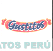 El logotipo conformado por la denominación GUSTITOS escrita en letras características de color azul con borde blanco y la representación estilizada de una salchicha de color rojo y borde amarillo, con la curva hacia arriba; conforme al modelo adjunto