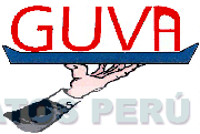 El logotipo conformado por la denominación GUVA escrita en letras características debajo de la cual aparece la representación estilizada de una bandeja sostenida por un brazo, todo en la combinación de colores rojo, azul, negro, gris, plomo, y rosado; conforme al modelo adjunto