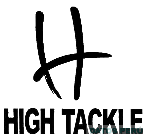 El logotipo conformado por el diseño estilizado de una letra H y la denominación HIGH TACKLE escrita en letras estilizadas en colores blanco y negro; conforme al modelo adjunto