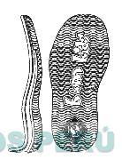 La figura bidimensional de una planta de calzado conformada por líneas ondulantes irregulares, en la parte central la denominación H&M KIDS escrita en letras características, en el lado derecho se aprecian dos figuras ovaladas conteniendo la denominación H&M escritas en letras características y en el área del talón la figura estilizada de una rosa náutica conteniendo una figura circular que contiene a su vez figuras irregulares. En la vista lateral se aprecian líneas irregulares; conforme al modelo adjunto