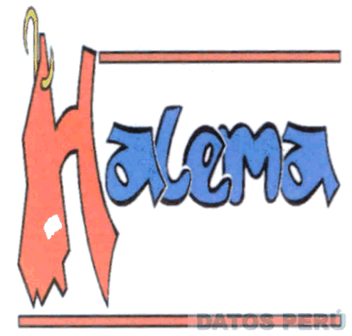 EL LOGOTIPO CONSTITUIDO POR LA DENOMINACION HALEMA ESCRITA EN LETRAS CARACTERISTICAS DONDE LA LETRA H SE ENCUENTRA REPRESENTADA POR UNA PIERNA DE RES INVERTIDA CON UN GANCHO SUPERIOR Y UN CUCHILLO INVERTIDO CONECTADO CON UNA BARRA; EN LA PARTE SUPERIOR E INFERIOR SE APRECIAN DOS BARRAS, TODO EN LOS COLORES ROJO, CELESTE OSCURO, NEGRO Y AMARILLO; CONFORME AL MODELO ADJUNTO
