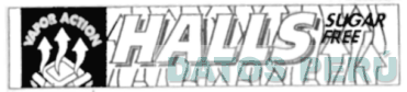 LA DENOMINACION HALLS ESCRITA EN LETRAS CARACTERISTICAS DE BORDE NEGRO SOBRE FLECHAS Y EN LA ESQUINA SUPERIOR DERECHA LOS TERMINOS SUGAR FREE (SIN REIVINDICAR), TODO AL LADO DE UN RECTANGULO NEGRO CON UNA PASTILLA DE LA QUE SALEN TRES FLECHAS, SOBRE LO CUAL SE ENCUENTRAN LOS TERMINOS VAPOR ACTION, CONFORME AL MODELO ADJUNTO,