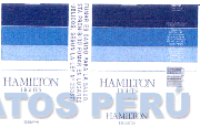La etiqueta rectangular conteniendo franjas horizontales de diferentes tamaños en los colores azul, celeste y blanco, debajo se aprecia la denominación HAMILTON LIGHTS escrita en letras características de color negro y demás leyendas alusivas al producto; conforme al modelo adjunto