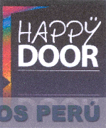 El logotipo conformado por la denominación HAPPY DOOR escrita en letras características, en donde se aprecia la letra Y con rostro sonriente, una figura irregular, una línea horizontal, y el reflejo de la denominación DOOR en la parte inferior; todo en los colores blanco, fucsia, rojo, verde, azul, anaranjado, amarillo y negro; conforme al modelo adjunto