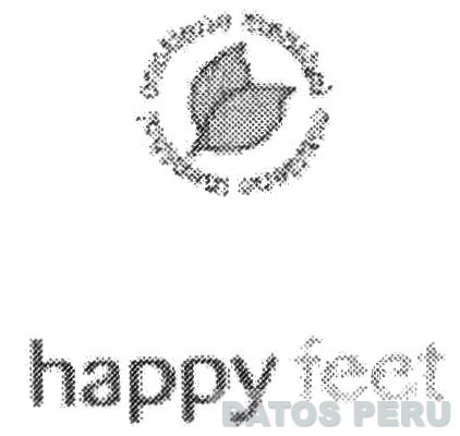 La denominación HAPPY FEET escrita en letras características consignada debajo del diseño estilizado de dos hojas encerradas dentro de un círculo, sin reivindicar color ni tonalidad alguna; conforme al modelo adjunto