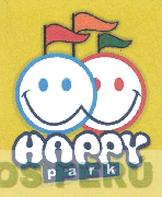La denominación HAPPY PARK escrita en letras características, en la parte superior dos caritas felices y encima tres banderas, en los colores mostaza, rojo, celeste, azul, anaranjado, verde y blanco; conforme al modelo adjunto.