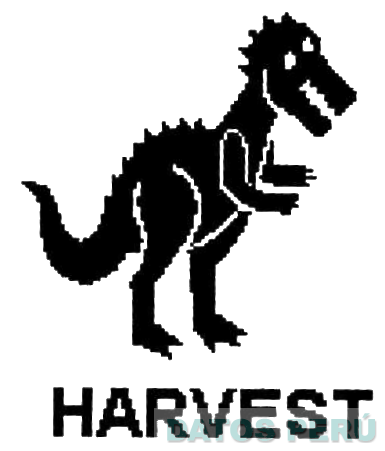 El logotipo conformado por la denominación HARVEST escrita en letras características y en la parte superior se aprecia la figura estilizada de un dinosaurio; conforme al modelo adjunto