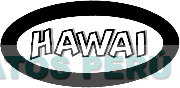 El logotipo conformado por dos figuras ovaladas concéntricas de color negro y blanco, en el centro se aprecia la denominación HAWAI escrita en letras características de color blanco y bordes negros; conforme al modelo adjunto