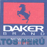 El logotipo conformado por la denominación DAKER BRAND NEW YORK HBR escrita en letras características, en la parte superior se aprecia la figura estilizada de un caballo dentro de un rectángulo; todo sobre un fondo azul, en la combinación de colores blanco y rojo; conforme al modelo adjunto