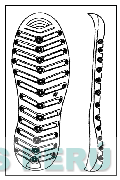 La figura bidimensional de una planta de calzado conformada por diversas figuras circulares, figuras irregulares en la parte superior una figura irregular que contiene líneas circulares, en la parte central la denominación HD escrita en forma característica, en la parte inferior una figura irregular; en la vista lateral se aprecia una línea en posición horizontal, diversas figuras circulares; conforme al modelo adjunto