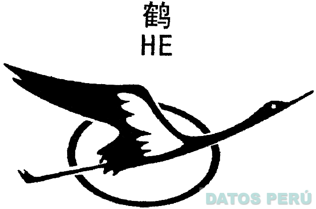 La denominación HE, el diseño de caracteres chinos, y la figura estilizada de un ave sobre un ovalo; conforme al modelo adjunto