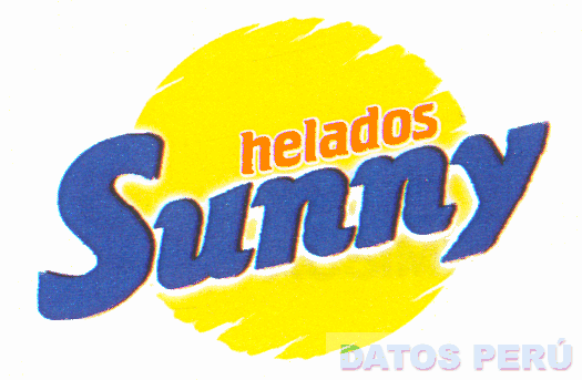 El logotipo conformado por la denominación HELADOS SUNNY escrita en letras características; y la figura de un sol, todo en la combinación de colores amarillo, anaranjado y azul; conforme al modelo adjunto