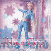 La denominación HELLO CECY escrita en letras características en color fucsia, la representación estilizada de una muñeca con la mano levantada, vestida en color turquesa, en la parte inferior una radio, todo en un fondo de flores color lila y turquesa; conforme al modelo adjunto