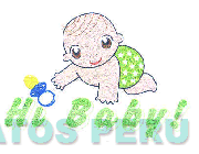 El logotipo conformado por la denominación HI BABY! escrita en letras características, un chupón que representa el punto de la I y la representación de un bebé en posición de gateo, en la combinación de colores rosado, verde limón, celeste y amarillo; conforme al modelo adjunto