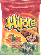 La etiqueta que contiene la denominación HÍJOLE escrita en letras características y debajo la representación estilizada de un charro y unos bocaditos, todo en la combinación de colores rojo, anaranjado, amarillo, verde, negro, blanco y marrón; conforme al modelo adjunto