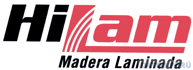 El logotipo conformado por la denominación HILAM escrita en letras características y en cuya letra L se encuentran tres líneas curvas; en la parte inferior se aprecia la frase MADERA LAMINADA (sin reivindicar), en los colores blanco, rojo y negro; conforme al modelo adjunto