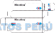 La denominación HIRUDOX y la caja-empaque (se reivindica colores), conforme al modelo