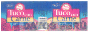 LA ETIQUETA CONTENIENDO UNA FIGURA GEOMETRICA EN LA QUE SE APRECIA EN LA PARTE SUPERIOR LA DENOMINACION HOJA REDONDA Y DISEÑO, ASI COMO LA DENOMINACION TUCO CON CARNE 100% NATURAL, SIN REIVINDICAR, ESCRITA EN LETRAS CARACTERISTICAS. TODO SOBRE UN FONDO EN LOS COLORES AZUL, CELESTE, ROJO, AMARILLO, BLANCO Y VERDE, APRECIANDOSE EN LA PARTE INFERIOR TRES PLATOS SERVIDOS SIN REIVINDICAR, EN CUYA ELABORACION INTERVIENE EL PRODUCTO,